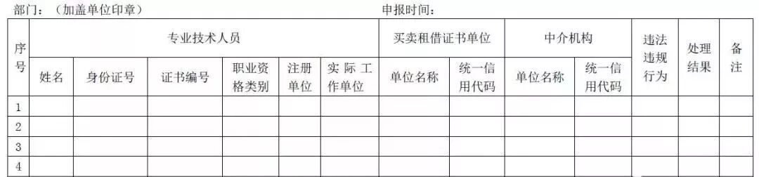 各省级住房城乡建设、人力资源社会保障、交通运输、水利、通信主管部门总结本地区全面排查工作情况,并由省级住房城乡建设部门统一汇总形成专项整治全面排查工作总结,于2019年7月15日前报住房城乡建设部,并抄送人力资源社会保障部、工业和信息化部、交通运输部、水利部、铁路局、民航局。自2019年3月起,每月5日前省级住房城乡建设部门负责将上月查处的工程建设领域专业技术人员职业资格“挂证”等违法违规情况处理汇总表(见附件)报住房城乡建设部,并抄送人力资源社会保障部、工业和信息化部、交通运输部、水利部、铁路局、民航局。